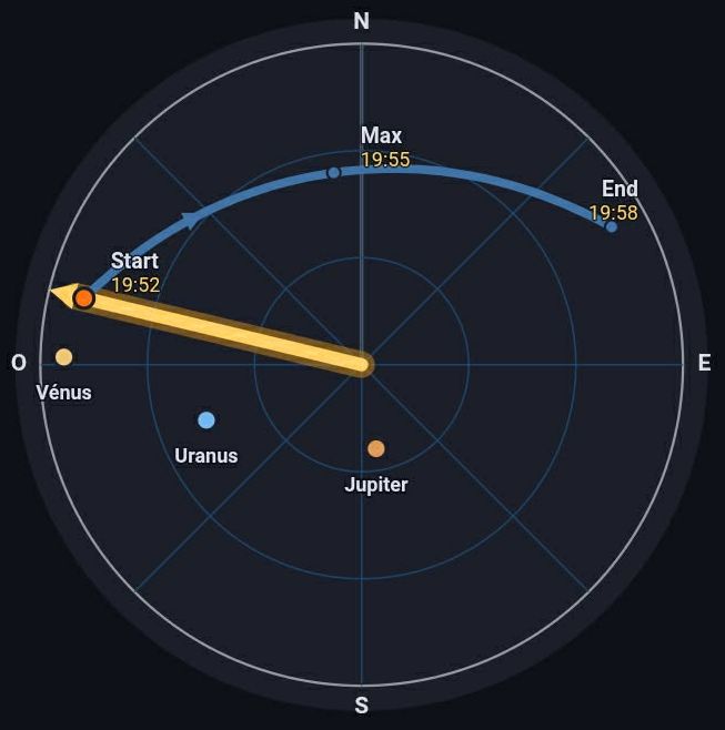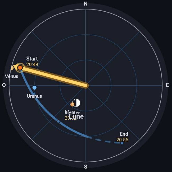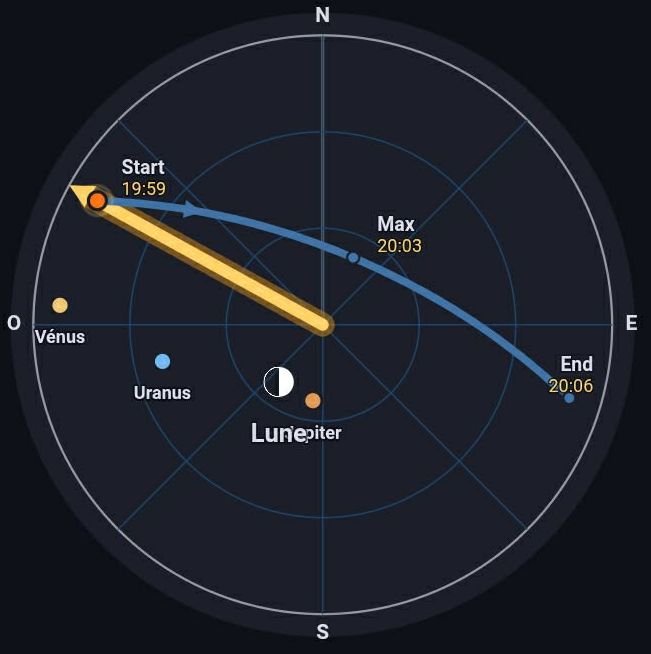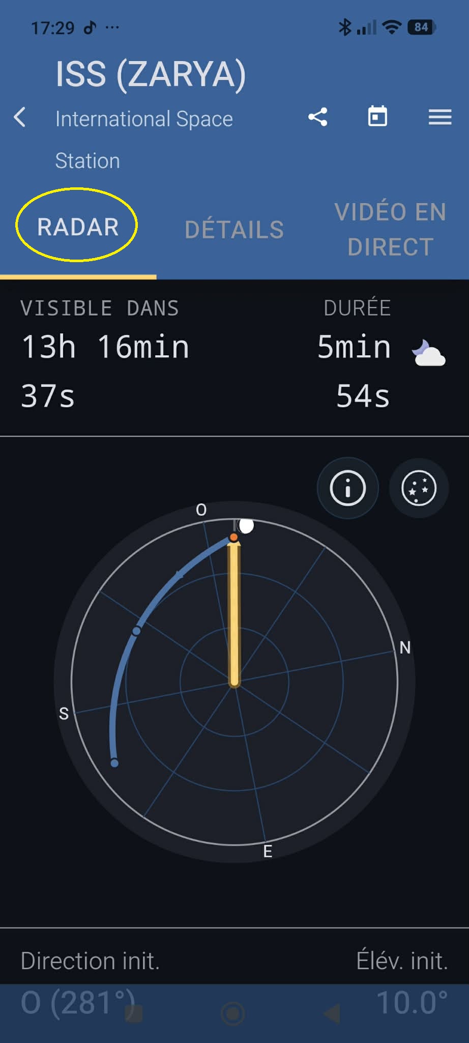 la nouvelle application : Sur votre téléphone, pour suivre l'ISS, passez en mode RADAR pour suivre l'ISS en azimut en tournant avec le téléphone et incliner vers le haut ou le bas en élévation |