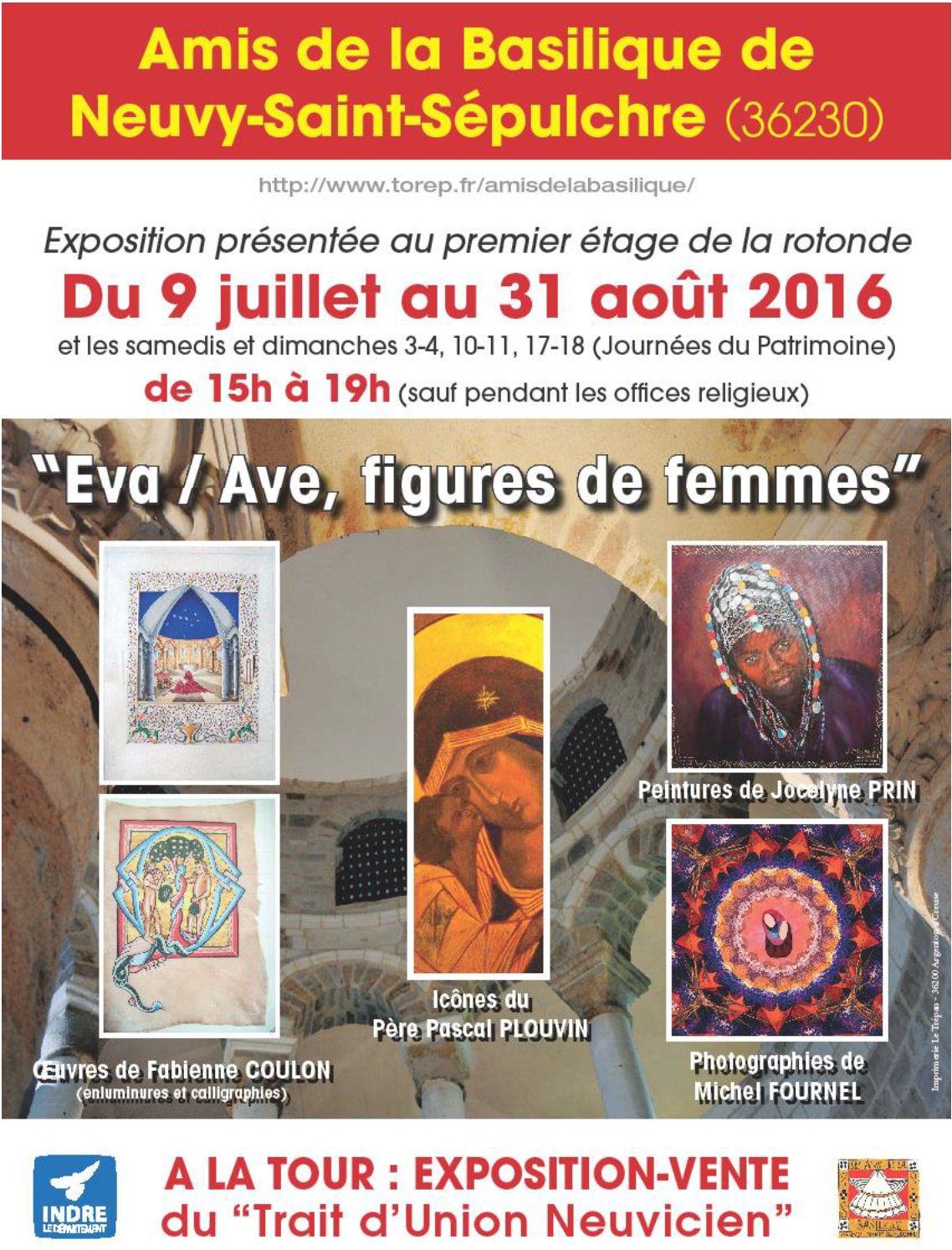 Le programme Mardi 19 juillet 2016 à 15h30 : Visite guidée de la Basilique et démonstration de calligraphie et d’enluminure avec Fabienne Coulon de 16h à 18h30. Mardi 26 juillet 2016 à 15h30 : Visite guidée de la Basilique et démonstration de calligraphie et d’enluminure avec Fabienne Coulon de 16h à 18h. Suivies à 18h d’une découverte des répétitions du spectacle « Gloire et Châtiments »Du vendredi 29 juillet au mardi 2 août 2016 : Spectacle « Gloire et Châtiments » (autour de la Guerre de Cent ans », présenté par l’A.N.A.C. (Amis Neuviciens Art et Culture), les vendredi 29, samedi 30 et dimanche 31 Juillet 2016 et lundi 1er et mardi 2 août 2016.- Tarifs : 16€ / 8€ pour les moins de 12 ans / gratuit pour les moins de 5 ans. - Restauration sur place les 29, 30, 31 Juillet (12€ le repas) suivie d’une visite guidée gratuite de la basilique. Contact : 06 63 06 02 78 Mardi 2 août 2016 à 15h30 :. Visite guidée de la Basilique et démonstration de calligraphie et d’enluminure avec Fabienne Coulon de 16h à 18h30. Jeudi 4 août à 20h30 : Entretiens spirituels, lectures, commentaires et musiques, avec le Père Max Huot de Longchamp, modérateur du Centre Saint-Jean-de-la-Croix à Courtioux (Mers-sur-Indre). Dimanche 7 août 2016 à 15h30 : "Formes et symboles dans la basilique de Neuvy-Saint-Sépulchre" par Gérard Guillaume Président des Amis de la Basilique. Gratuit. Dans le cadre du Festival des Milliaires Dimanche 7 août 2016 à 16h30 : « Pien d’amoroso affetto » avec Angélique et Marc Mauillon, harpe triple et baryton. - Tarifs : 16€ et 11€ /gratuit pour les moins de 15 ans accompagnés - Dans le cadre du Festival des Milliaires en partenariat avec le Festival de Gargilesse, un pot sera offert à l’issue de ce concert. Mardi 9 août 2016 à 15h30 : Visite guidée de la Basilique et démonstration de calligraphie et d’enluminure avec Fabienne Coulon de 16h à 18h30 Vendredi 12 août 2016 à 17h : « Les passages berrichons » avec Gérard Guillaume, Président des Amis de la Basilique. - Gratuit. Rendez -vous à 17h à l’église Saint-Martin de Nohant-Vic (bourg de Vic) - Dans le cadre du Festival des Milliaires Samedi 13 août à 20h30 : Entretiens spirituels, lectures, commentaires et musiques, avec le Père Max Huot de Longchamp, modérateur du Centre Saint-Jean-de-la-Croix à Courtioux (Mers-sur-Indre). Dimanche 14 août 2016 à 20h : « 10 ans, 1000 notes », par les « Ménestriers Picards ». - Tarifs : 15€ et10€ /gratuit pour les moins de 15 ans accompagnés. - Dans le cadre du Festival des Milliaires Mardi 16 août 2016 à 15h30 : Visite guidée de la Basilique et démonstration de calligraphie et d’enluminure avec Fabienne Coulon de 16h à 18h30 Mardi 23 août 2016 : Démonstration de calligraphie et d’enluminure avec Fabienne Coulon de 16h à 18h30 Dimanche 9 octobre