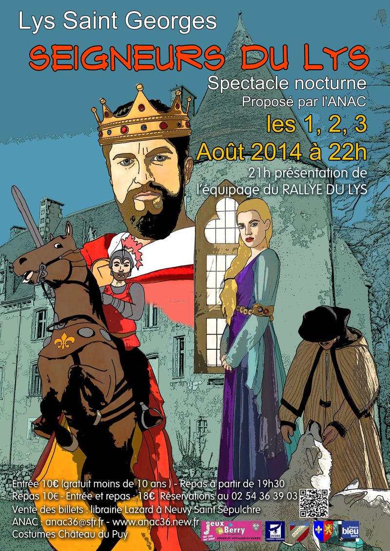 L'HISTOIRE en 8 scènes Scène 1 : l'arrivée des croisés Des croisés, dont le Seigneur du village accompagné de son écuyer, rentrent de terre sainte où ils ont combattu pour la libération du tombeau du Christ. Mais le Seigneur revient avec la lèpre et n'ose pas rentrer dans son château. Il décide de s'arrêter au bord du Gourdon et d'y faire construire un hôpital. Scène 2 : les rois de France et d'Angleterre Richard cœur de lion et Philippe Auguste se font la guerre, notamment en Berry. Sur les conseils du légat du pape, ils décident défaire une trêve. D'après George Sand, ils auraient donné le nom de Lys St Georges au village. Scène 3 : le duc de Milan Un prisonnier célèbre, le Duc Ludovic Sforza, a été emprisonné au château sous la garde Gilbert Bertrand compagnon d'armes de Louis XII. Il décide de s'évader mais est repris et enfermé jusqu'à sa mort au château de Loches. Une diseuse de bonne aventure, faisant partie d'un cirque ambulant, lui prédira son avenir. Scène 4 : le procès A l'ancienne maison appelée « le Parlement », le Seigneur du village rendait justice au nom du Roi. Un procès a lieu et l'accusé sera pendu. Scène 5 : le curé En 1737, le Seigneur du château, Gilbert Bertrand, se disputait souvent avec le curé. Un jour le curé est retrouvé mort au pacage des Fourches. Les langues vont bon train sur la place de l'église. Scène 6 : le moulin maudit Au moulin de Fange, au 19eme siècle, un meunier ne faisant pas affaire, donne l'âme de son enfant au diable, mais sa femme le fait bénir et son âme est sauvée. Le diable ne pouvant plus rien contre lui va se venger. Scène 7 : les loups Une grand-mère raconte à des enfants l'histoire des meneurs de loups. Fiction ou réalité lorsqu'un homme apparaît entouré de loups ? Scène 8 : bal au château Pour sceller leur accord, les rois font un banquet au château. La cour est présente : dames de cour, serviteurs, valets, troubadours, la fête est au rendez-vous... |