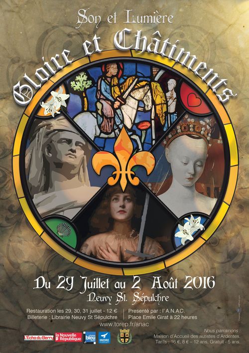 Gloire et châtiments Son-et-lumière Neuvy-Saint-Sépulchre Les 29, 30, 31 Juillet Tarifs : Restauration sur place